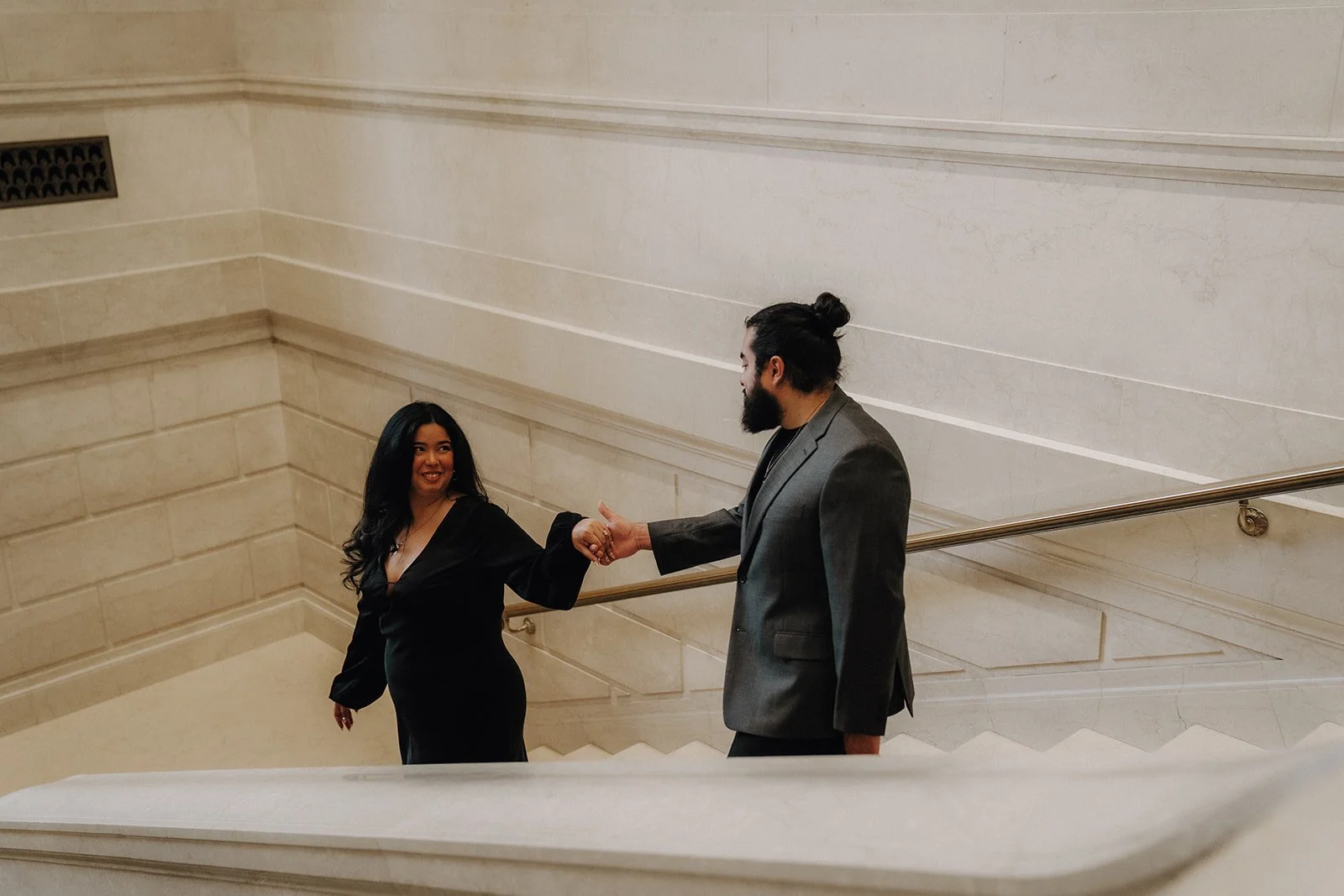 We kindly request creative black tie attire for our wedding. Gentlemen are asked to wear tuxedos, while ladies are encouraged to choose an evening gown or formal cocktail dress. We invite guests to wear jewel tones such as sapphire or amethyst to complement the evening’s ambiance. Please avoid wearing white, emerald green, burgundy, or gray, as these colors are reserved for the wedding party. Thank you for your understanding.